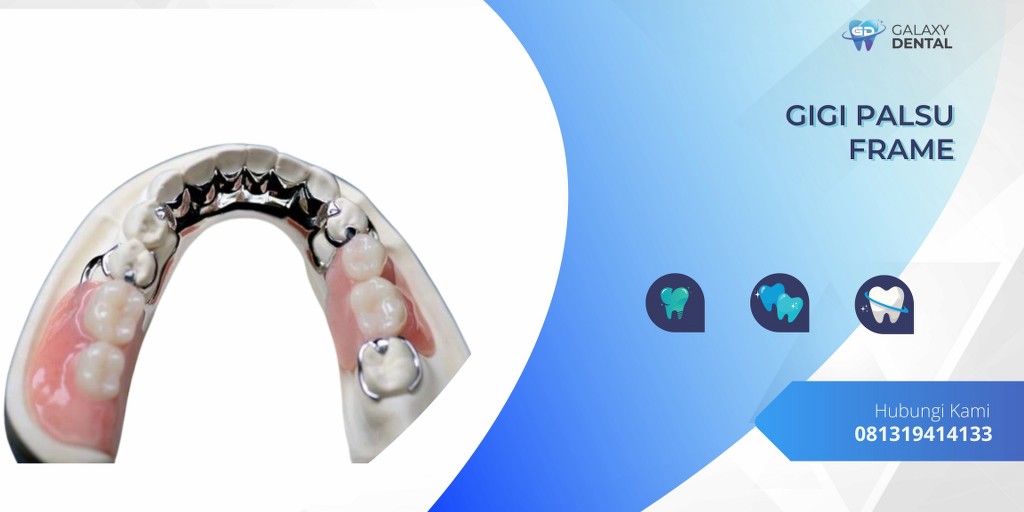Gigi palsu frame adalah gigi palsu lepasan yang terbuat dari bahan logam jenis titanium anti karat sebagai platnya yang di kombinasikan dengan bahan akrilik ataupun valplast.